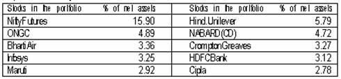 The fund has deployed over 77% of its net assets in large cap stocks while 23% is invested in the mid cap pack. The portfolio also reveals a reasonable exposure in Nifty Futures.