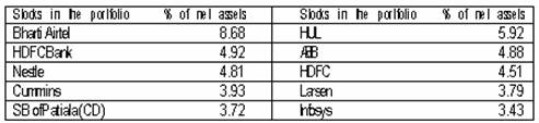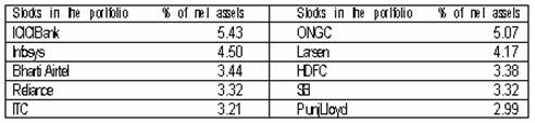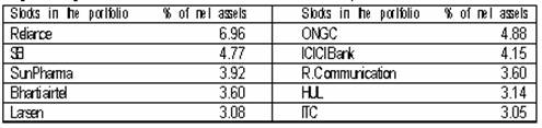 The portfolio of the scheme is a good blend of large cap and mid cap stocks with 68% in large caps and the remaining is deployed in mid caps. The scheme is overweight in financial services, energy, technology, consumer non- durables and basic engineering.